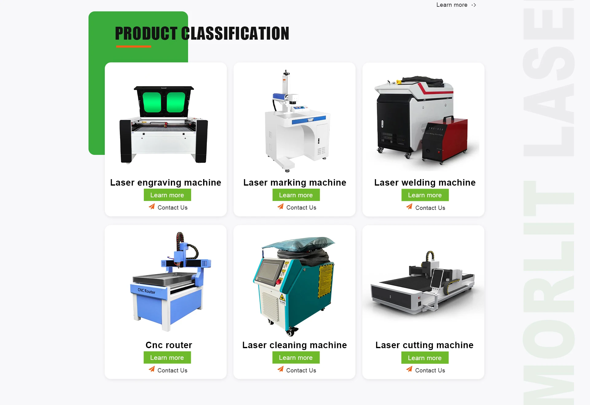 Main categories: Laser Marking Machine, Laser Welding Machine, Laser Engraving Machine, Laser Cutting Machine, CNC Router